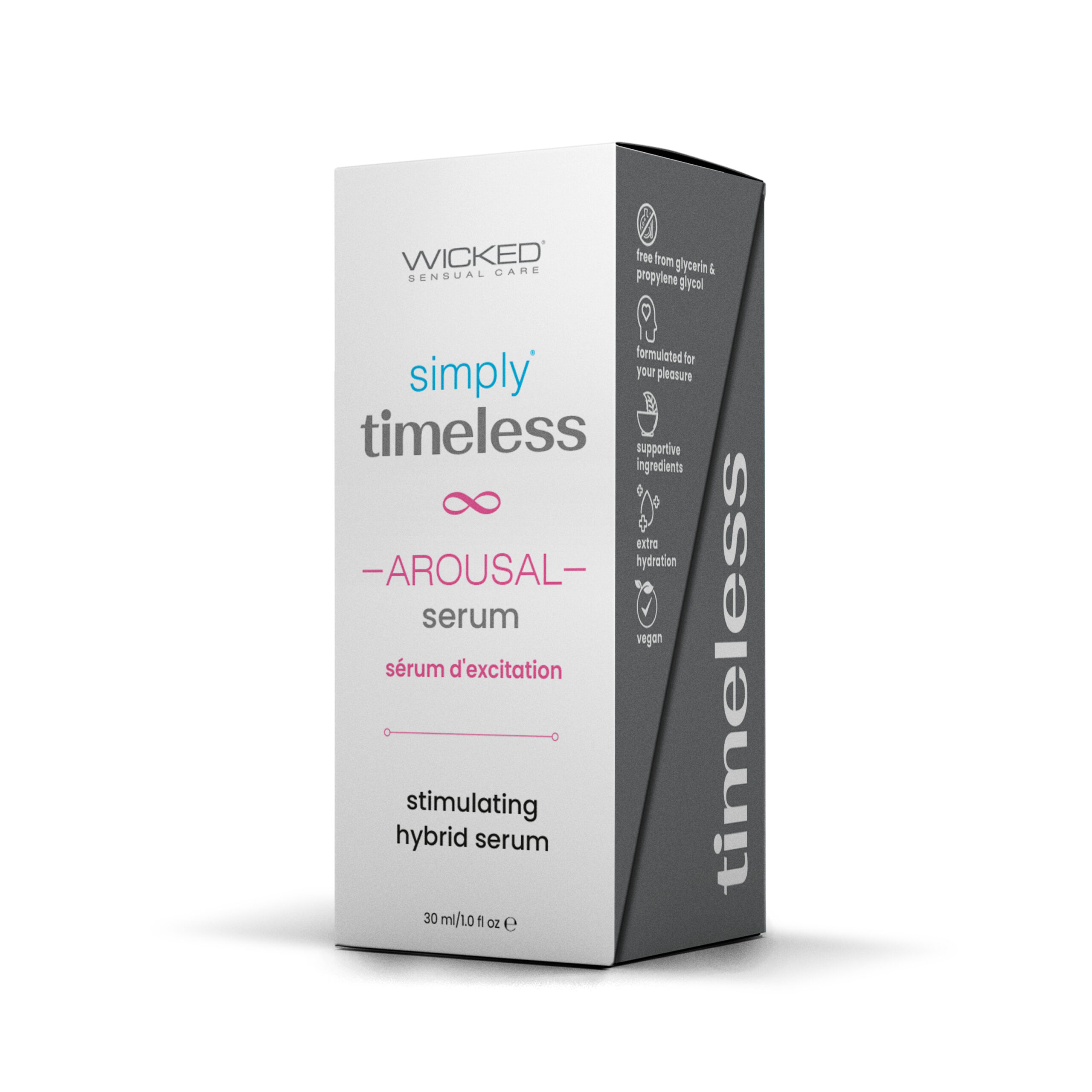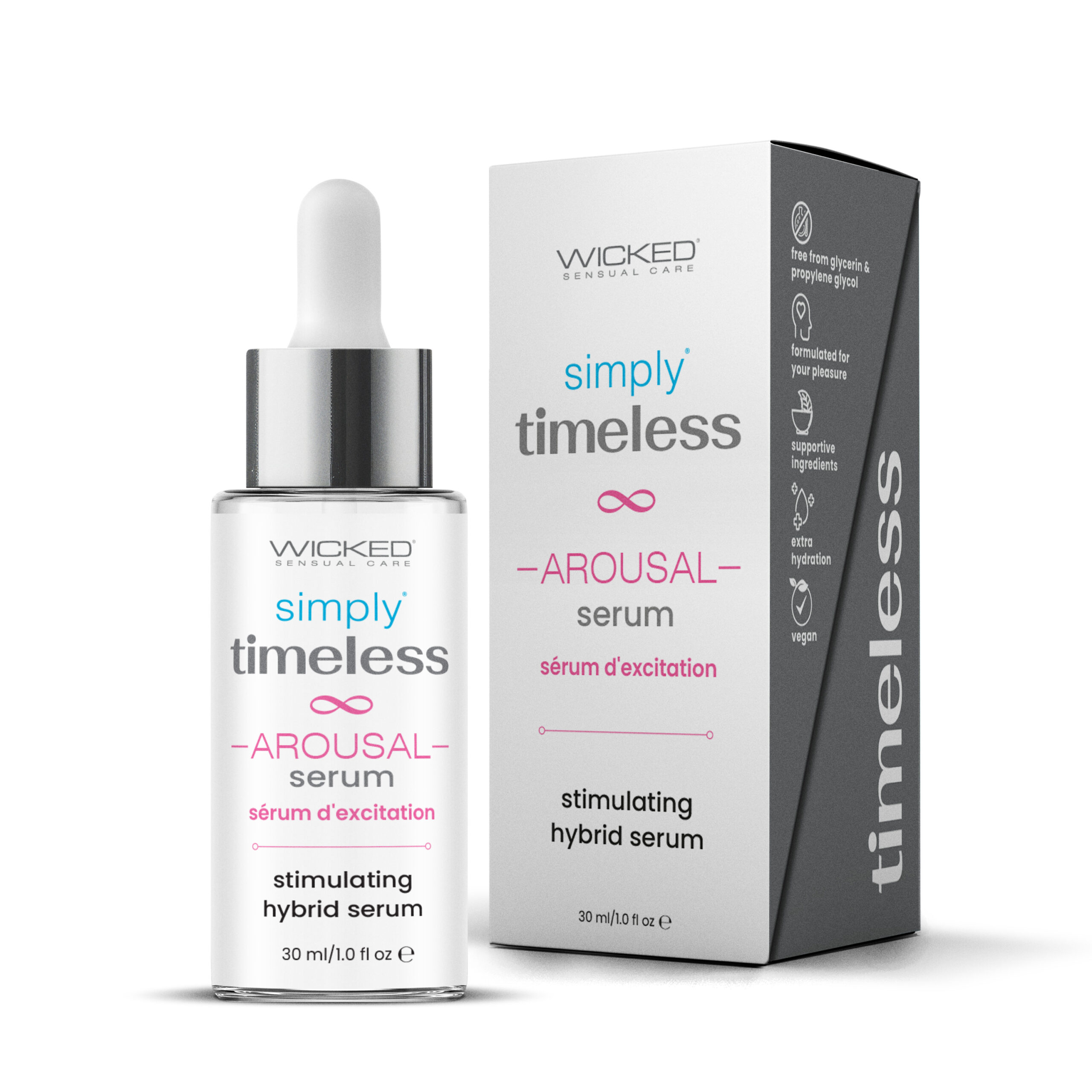 simply® timeless™ Arousal Serum contains Wicked Sensual Care’s signature supportive ingredients that the timeless™ collection features, as well as amino acids and peptides.